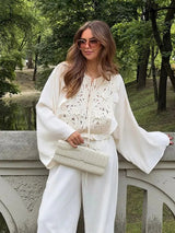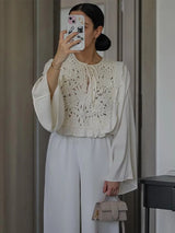 Entdecken Sie entspannte Eleganz in diesem locker sitzenden, hüftlangen Polyester-Top. Mit langen Ärmeln und einem weichen Rundhalsausschnitt bietet es atmungsaktiven Komfort und eine schmeichelhafte Form für warme Abende oder windige Tage. Perfekt kombinierbar mit Jeans, Röcken oder Shorts für einfache, schicke Reisestile. Überprüfen Sie unbedingt die Größentabelle für Ihre ideale Passform. Leichte natürliche Variationen verleihen ihm zusätzlichen Charme.