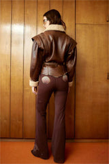 Schicker Kunstpelzbesetzter PU-Leder Schnürmantel