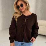 Genießen Sie gemütliche Herbsttage mit dieser weichen, mäßig dicken Strickjacke. Mit einer stylischen Schnürung vorne und einer kurzen Länge ist sie perfekt zum Schichten über Ihre Lieblingsoberteile geeignet. Die lockere Silhouette und die feine Nahtführung verleihen sowohl lässigen als auch Büro-Looks einen Hauch von klassischem britischem Pendlerstil. Erhältlich in vielseitigen Farbtönen wie Weiß, Armygrün, Schwarz, Hellgelb und Braun, die Ihre saisonale Farbpalette wunderbar ergänzen.