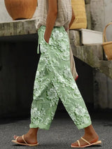 Diese legeren Damenhosen mit floraler Spitze vereinen den natürlichen Look eines Leinen-Baumwoll-Mixes mit femininen Stickereien. Das lange, locker geschnittene Design sorgt für Komfort im Alltag, während zarte Spitzen- und Blütenakzente jedem Outfit eine romantische Note verleihen. Perfekt für Frühling, Sommer und entspannte Casual-Looks.