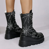 Gothic Grobe Plateauschuhe mit mittelhohem Schaft und Spinnennetz-Detail