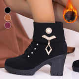 Schicke Stiefeletten mit Strasssteinen und klobigem Absatz