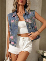 Ärmellose Damen-Jeansweste mit Blumenmuster im Vintage-Sommerstil