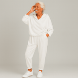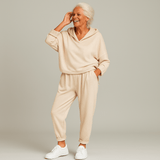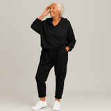 Dieses zweiteilige Kapuzen-Set vereint Komfort und modernen Stil. Es besteht aus einem Hoodie mit lockerem Schnitt und passenden, hoch taillierten Jogginghosen aus weichem, atmungsaktivem Stoff. Perfekt für das Arbeiten von zu Hause, Erledigungen, Entspannung oder lässige Ausflüge – diese vielseitige Freizeitkleidung wertet den Alltag mühelos auf.