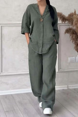 Entdecken Sie bequemen Stil mit diesem Damen Casual Baumwoll-Leinen Set