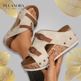 Bequeme Keilabsatzplattform verleiht Höhe ohne Unbehagen: Die gepolsterte Innensohle unterstützt Ihre Füße und macht es einfach, diese Sandalen den ganzen Tag zu tragen – sei es bei der Arbeit, bei legeren Anlässen oder beim Ausgehen.